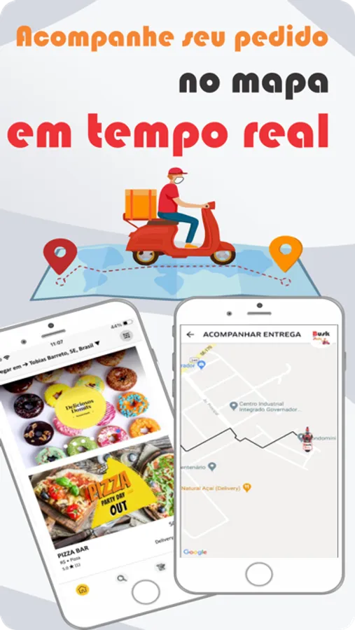 Ao fazer o seu pedido e informar o endereço de entrega, o app irá lhe informará o tempo estimado, o valor total do pedido (incluso impostos e valor da entrega). Você poderá acompanhar a entrega do seu pedido diretamente no mapa em tempo real.