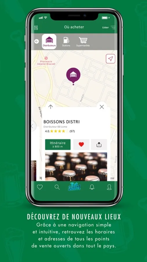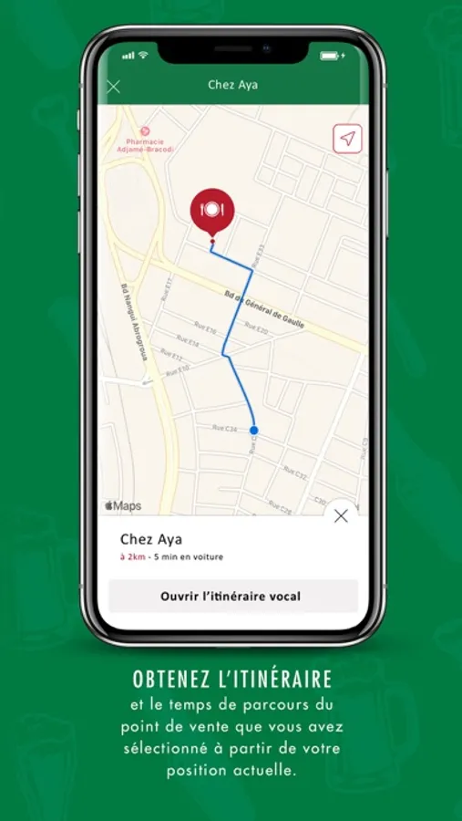 - Obtenir en temps réel l’itinéraire le plus court pour rejoindre votre établissement préféré ;
