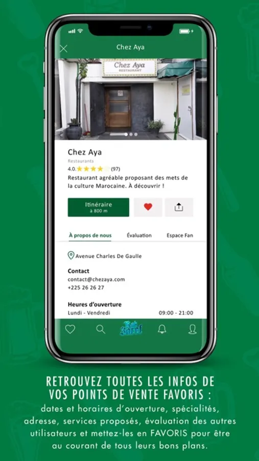- Enregistrer votre établissement préféré dans vos favoris ;