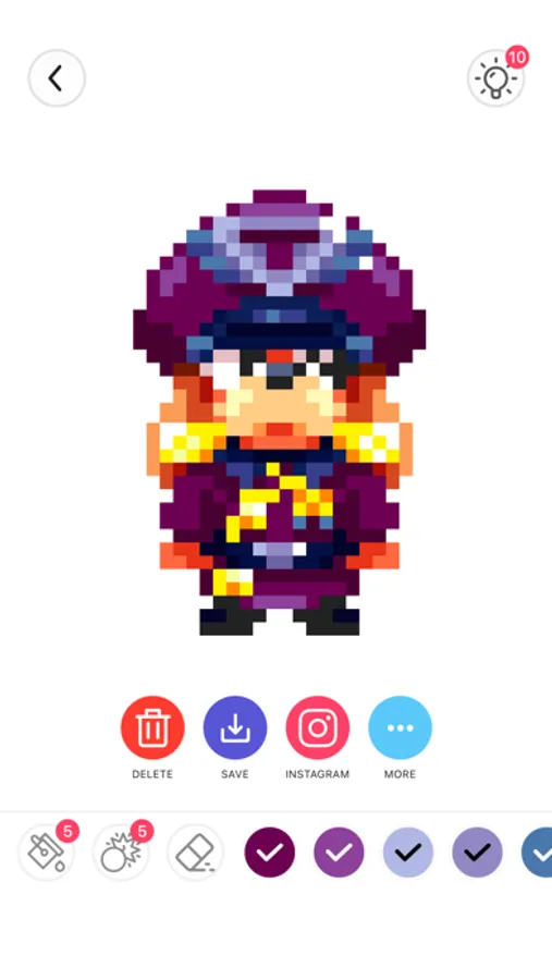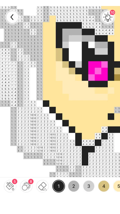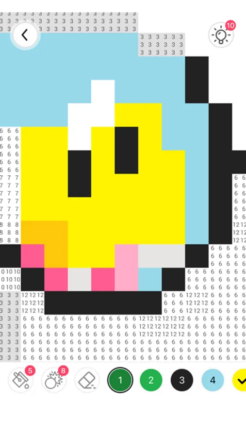 - Various coloring tools. Use bucket or bomb to paint multiple neighboring cells of any numbers;