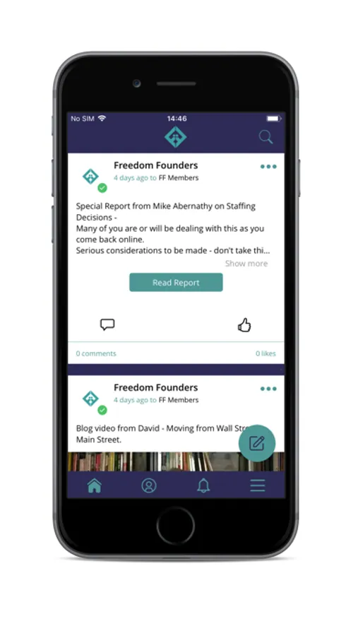 The Freedom Founders app keeps you up to date on all the latest news and topics within the Community. It includes exclusive access to discussions within your FIT group, the membership as a whole, and even seamless access to the Member Portal and other resources to help you in your Freedom journey.