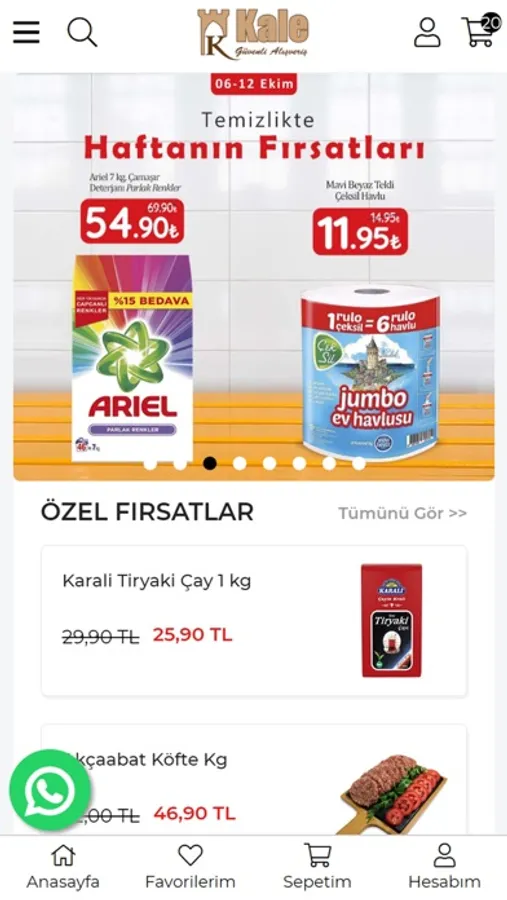 Kale Marketleri mobil e-ticaret uygulaması ile anında;