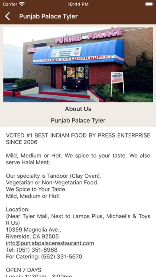 VOTED #1 BEST INDIAN FOOD BY PRESS ENTERPRISE SINCE 2006