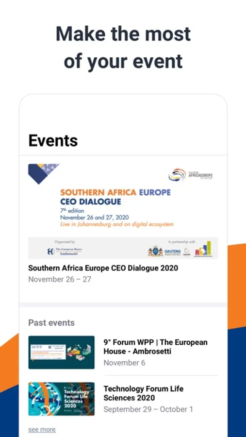 Through the Ambrosetti Experience app you can access the digital contents of the more than 300 annual events organized by The European House - Ambrosetti, the 1st private Italian Think Tank.