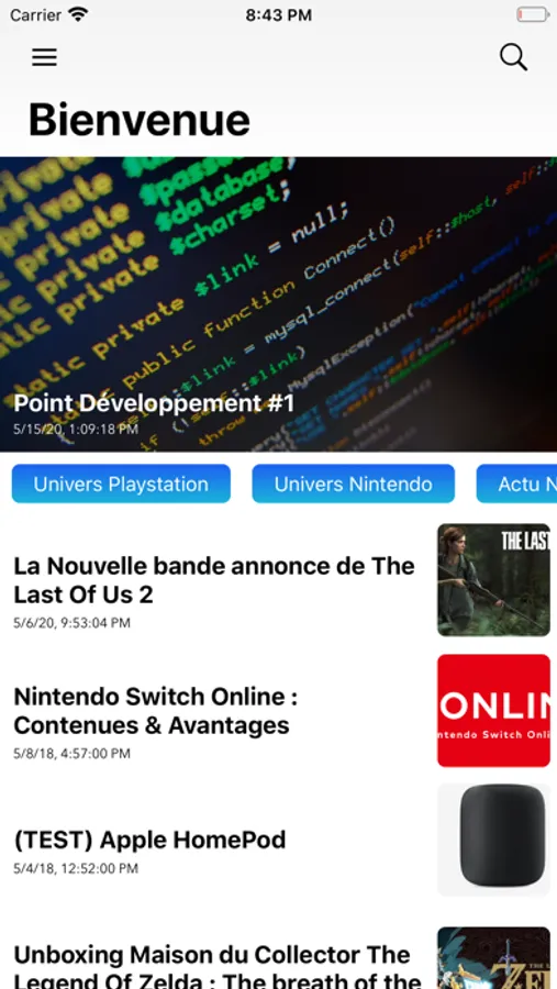 mais aussi des lives , report devaient , résumer des conférence Gaming et tech le tout dans une seul Application