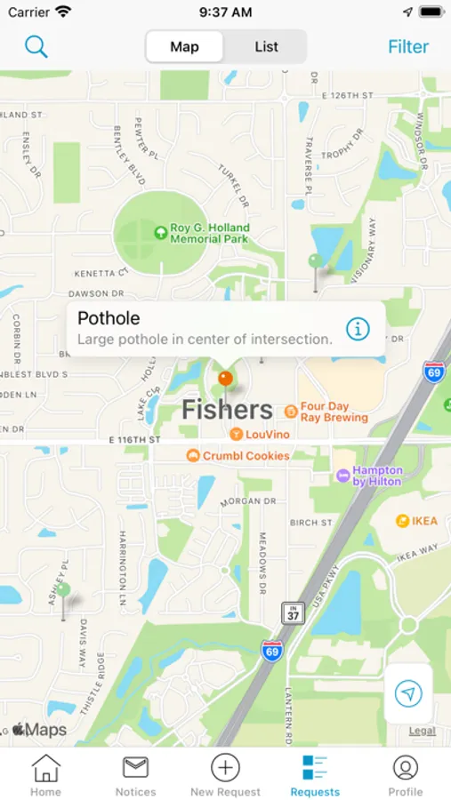 A one-stop-shop for your City of Fishers services. Broken street light? Pothole in the road? Fallen tree limbs in the street? We’re here to help. The free Fishers Connect app provides an easy way for residents to report non-emergency issues within the community related to City maintained roadways, street signs, storm water, water, sewer, street light, and park infrastructure elements. The app also provides quick links to city information and forms related to city services.