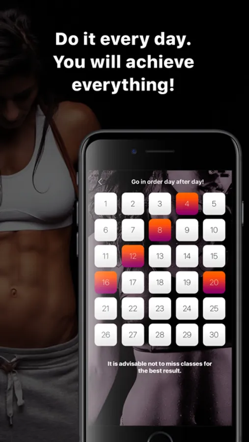 Скачивая приложение вы получите 30 дней физической подготовки. Нужно выполнять физические упражения каждый день. Не пропуская ниодного дня - вы получите желаемого результата. Для вашего удобства загружены GIF картинки - чтобы не ошибиться в выполнении заданий и неправильной нагрузки на мышцы.