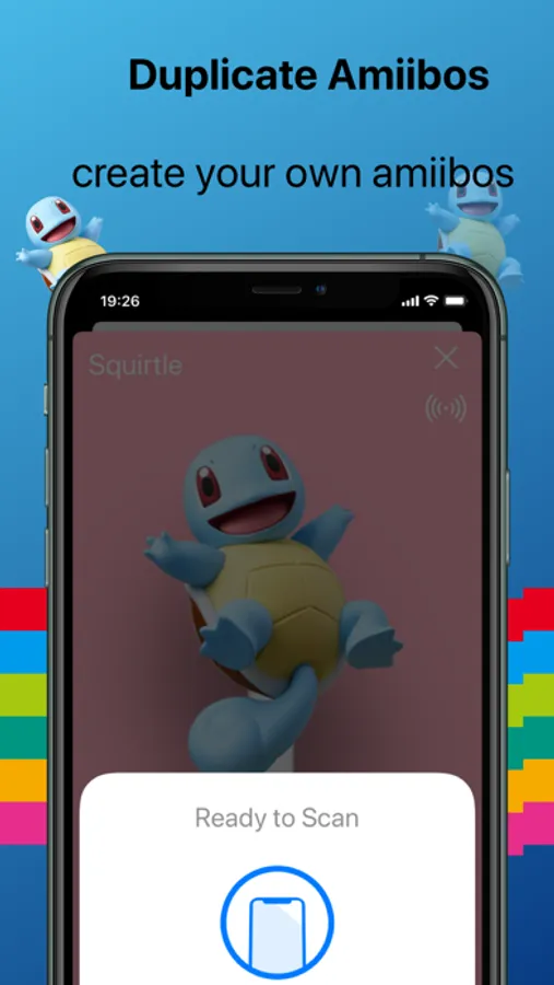 AmiiBot using new NFC* features introduced in iOS 13 to scan and copy amiibos. No searching, no browsing, just tap a button and put the amiibo near the phone.