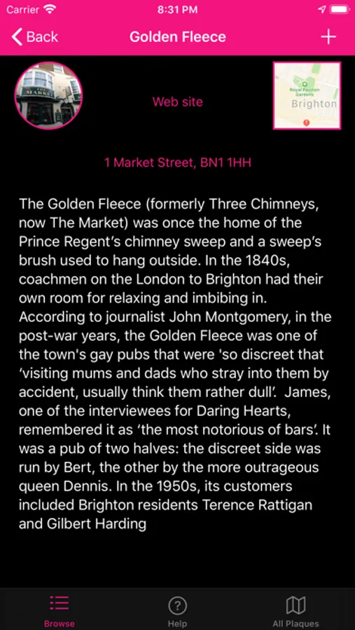 In the UK, Blue Plaques on a building denote a historical significance. We felt that these virtual Pink Plaques would be a great way of commemorating the wonderful LGBT history of Brighton. Maybe one day there will be physical ones too ...