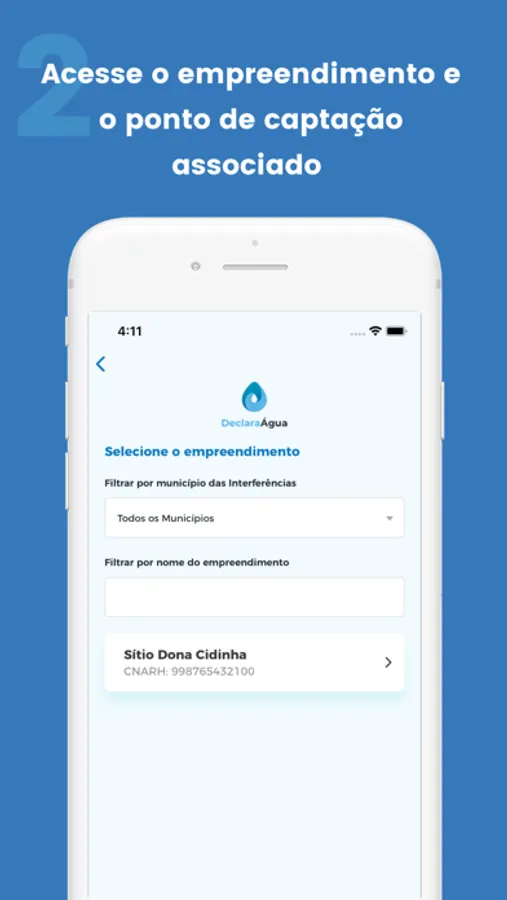 O aplicativo Declara Água é uma ferramenta simples para o usuário de recursos hídricos monitorar e acompanhar o seu uso da água e se conectar com o órgão gestor de recursos hídricos, enviando dados e fotos de seu equipamento de medição de volumes captados e recebendo informes do órgão gestor, para melhor controle e gestão de recursos hídricos.