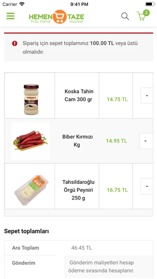 HemenTaze ile meyvenin, sebzenin en tazesini, et ve şarküteri ürünlerinin istediğiniz gibi hazırlanmış ve paketlenmiş şeklini, ihtiyacınız olan gıda ve temizlik ürünlerini uygun fiyatlar ile kolayca sipariş edebilirsiniz. Siparişlerinizi talepleriniz doğrultusunda özen ile hazırlıyor, soğutuculu araçlarımız ile kapınıza kadar biz taşıyoruz. Siparişinizi hazırlayan satış danışmanlarımız ve teslimat personelimiz siparişinizi özenle muhafaza ederek kapınıza kadar getirmektedir.