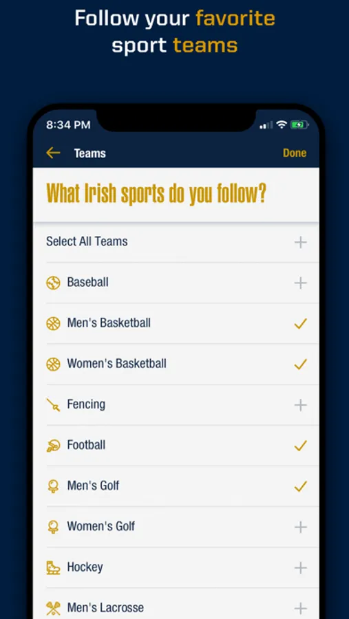 • Personalized Newsfeed: Follow your favorite sports, and instantly get the latest news, personalized for you. Have a customized sports experience, and be the first to know all about Notre Dame!