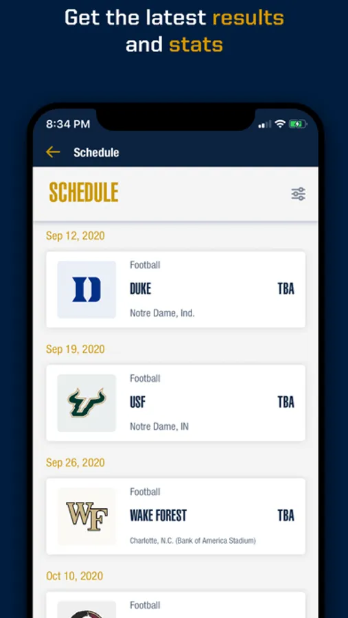 • The official Notre Dame app is a must-have for fans headed to the game or following from the sidelines. Create your own personalized content newsfeed and enjoy behind-the-scenes articles & videos. Begin your journey to Gameday by engaging with our new shopping experience, Browse our official team store for all the latest Notre Dame gear and purchase tickets to experience the thrill of Gameday this season!