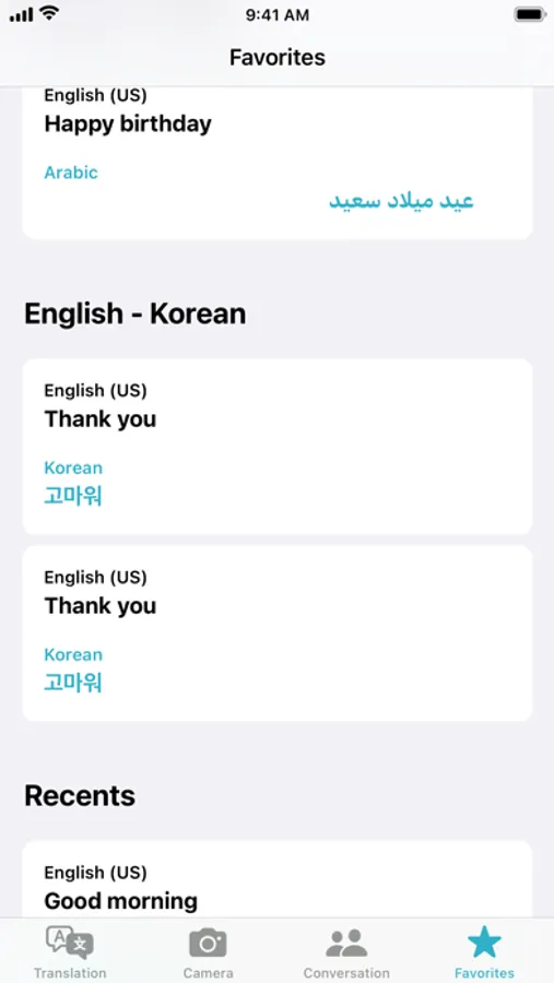 • Favorites - For phrases you use frequently and want to keep, save them to your Favorites for easy access later