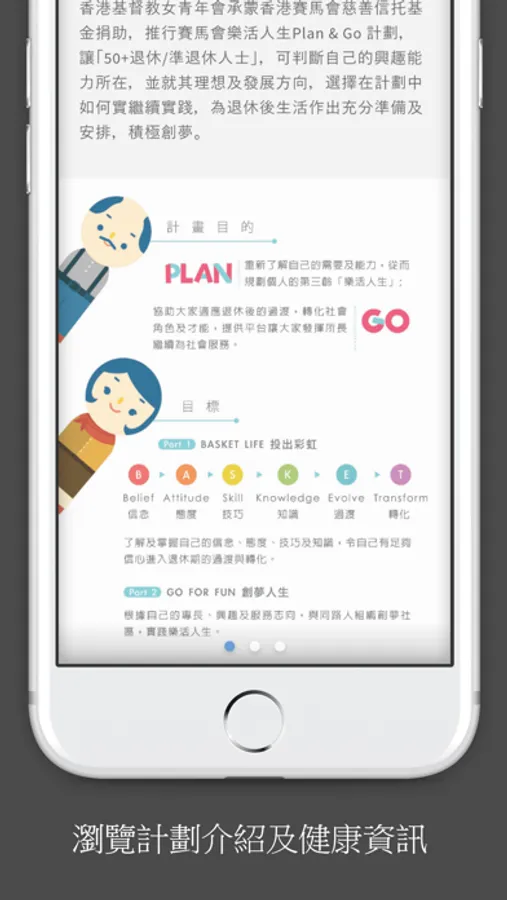 為退休人士提供實在的健康資訊,如政府,醫療,飲食及運動等資訊。