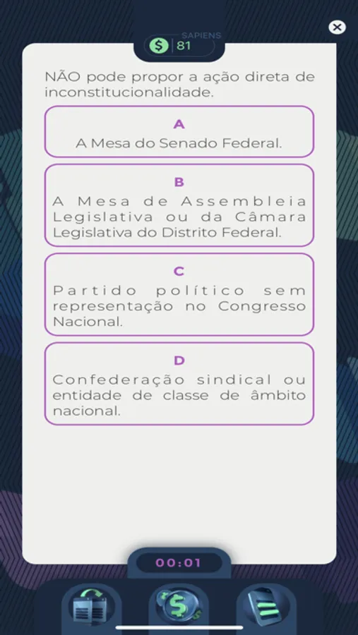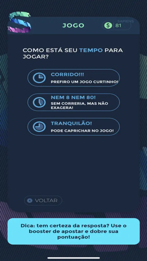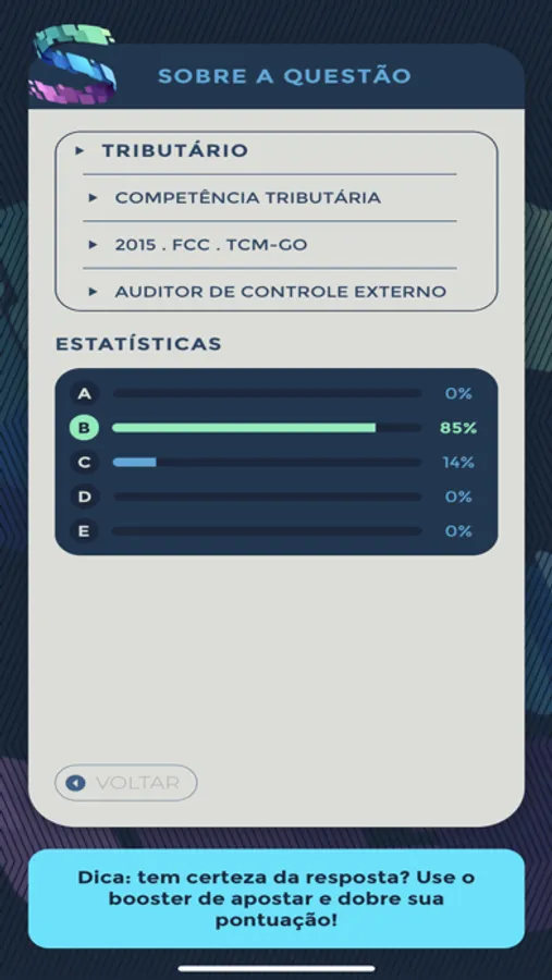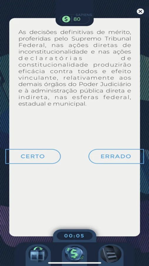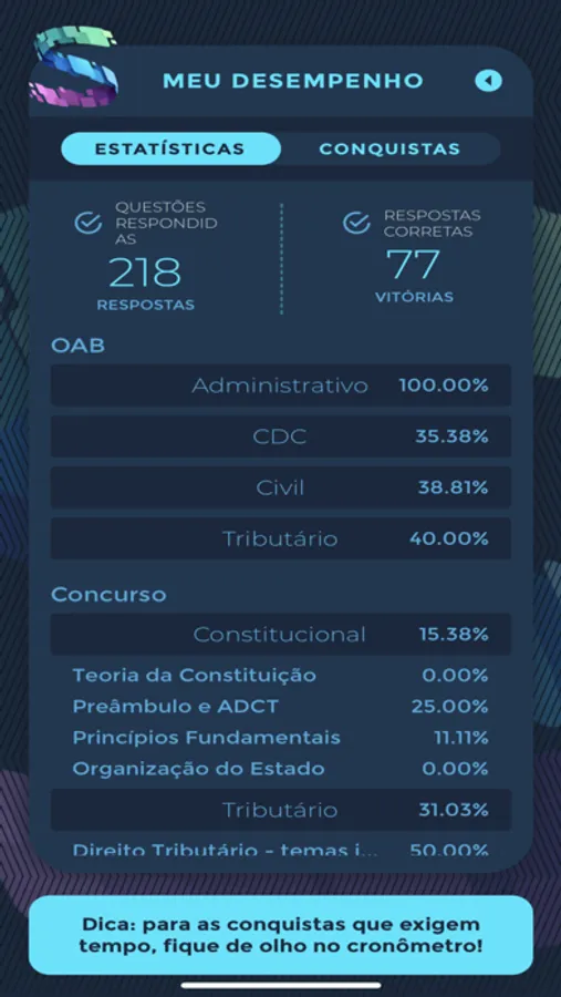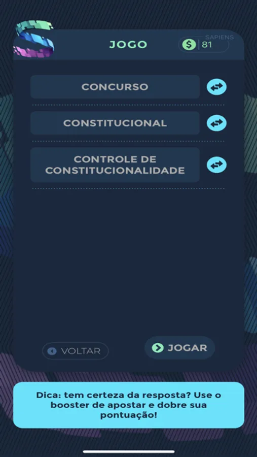 O Saber em Jogo é uma plataforma que une conhecimento e diversão durante a preparação para Concursos Públicos e Exame da OAB! Personalize seus jogos com as disciplinas e assuntos do seu interesse e acompanhe o seu desempenho por meio das estatísticas de jogo. Conquiste Sapiens, a moeda que vai te proporcionar mais ferramentas e recompensas. Utilize boosters para saltar questões, duplicar os seus pontos ou eliminar algumas alternativas para aumentar suas chances de acerto. No Saber em Jogo, você aprende se divertindo! Baixe o app e comece agora uma nova e emocionante jornada de conhecimento!