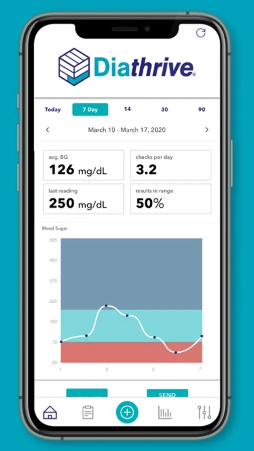 Pair your Diathrive meter with Bluetooth technology to sync your data. Add helpful information to your numbers, like carbs, exercise, insulin dose, etc.