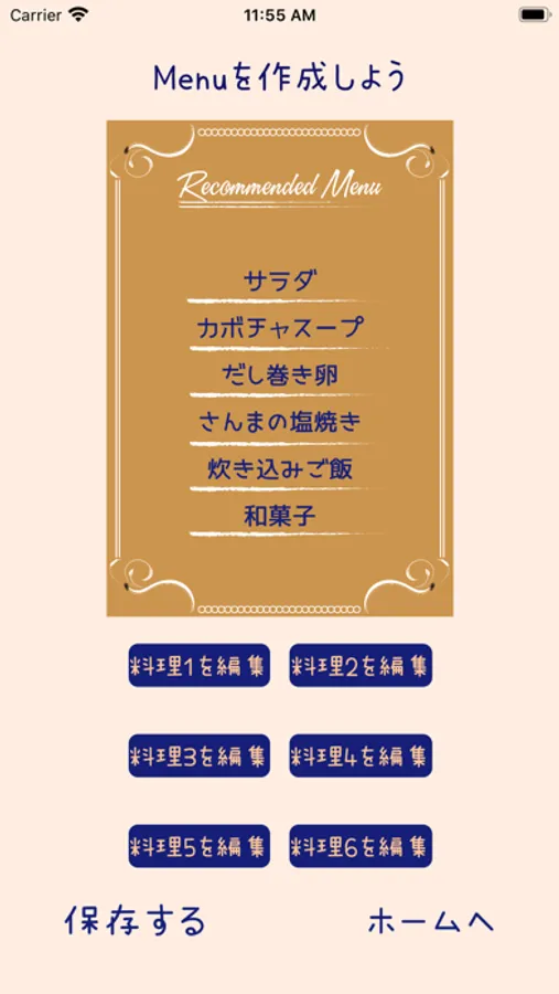 -(注意)保存をしないでホームに戻ると、メニューのデータが残りません