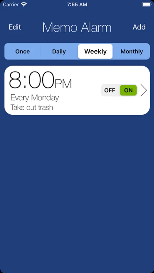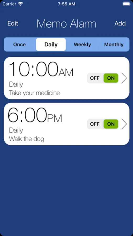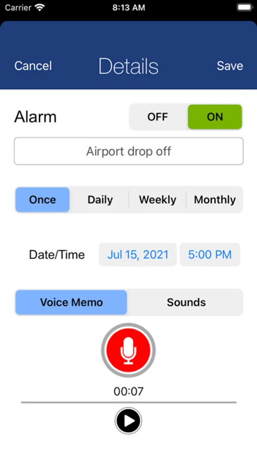 Play your custom voice message with daily, weekly, monthly alarms. Memo Alarm app lets you create alarms with a custom voice memo that plays back with alarm. SHARE alarms with family & friends.