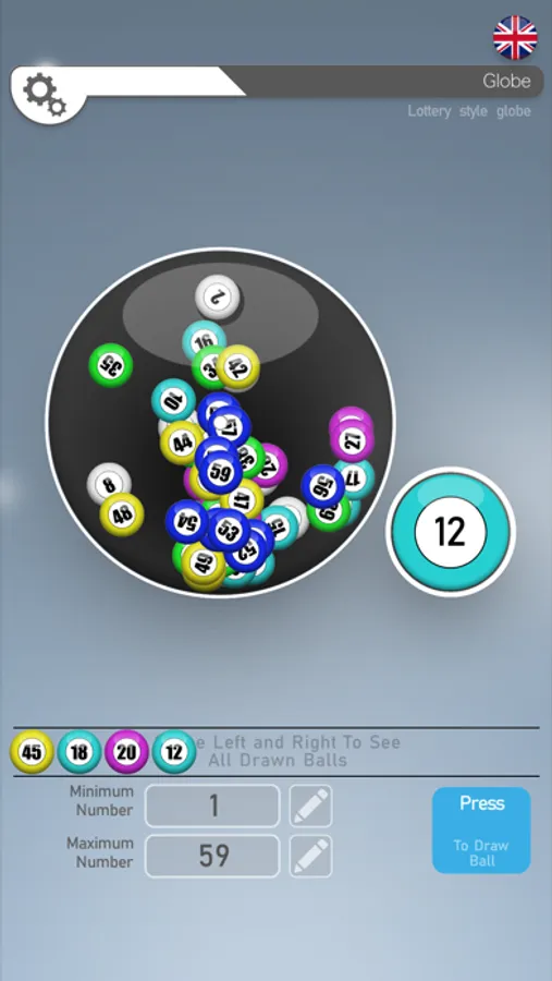 This shows a globe with bouncing balls, you press the button to draw one ball from the globe. It will show the current drawn ball and all the balls drawn before it, just scroll to see all the drawn balls. Use full for Keno, Bingo, Lotto or maybe the Lottery.