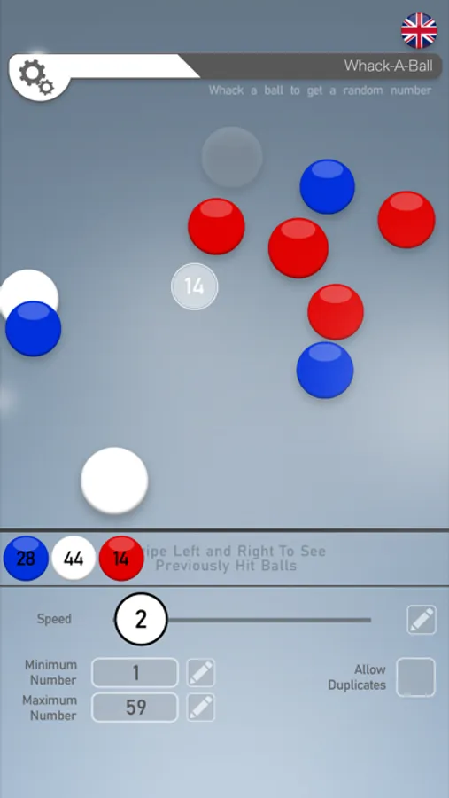 This is a bit of fun, click the balls as they bounce around, it will then give you a random number that will be generated from a minimum and maximum value. It will display the previously hit balls below.