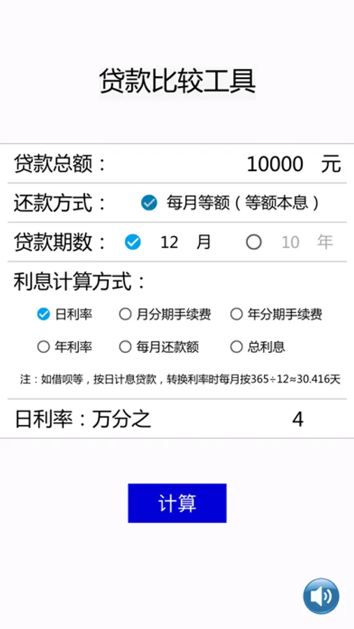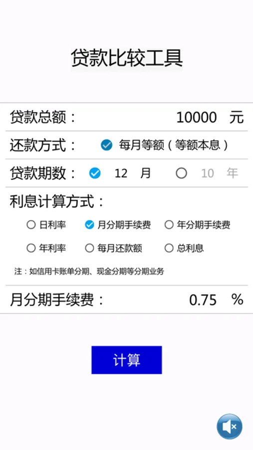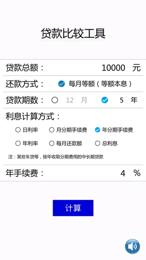 如有贷款的费率或利率打折,请输入折后的数值进行计算。