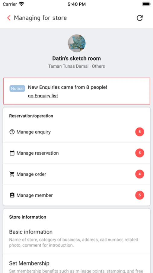 - Introduce of shops and menu support to promote the shop