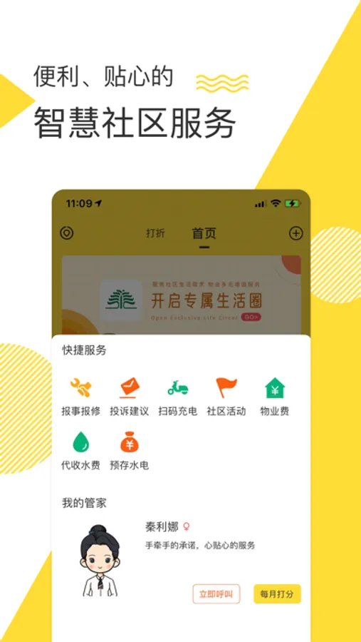 一个满足一切社区生活所需的服务平台,线上快速下单,线下快速响应,用它来处理生活中的琐事十分便捷,如报修、投诉、查费、订餐、洗衣、购物等。这款把科技融入社区服务的产品细致且贴心,同时,让社区服务变得更有人情味,为你的生活带来惊喜与满足。