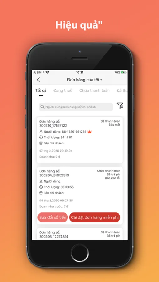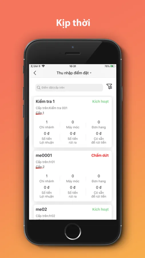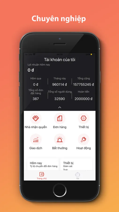 Chức năng chính của ứng dụng là quý đối tác có thể quản lý đơn hàng, đại lý, người dung, xem chi tiết thu nhập và các biên lai điện tử mọi lúc mọi nơi.