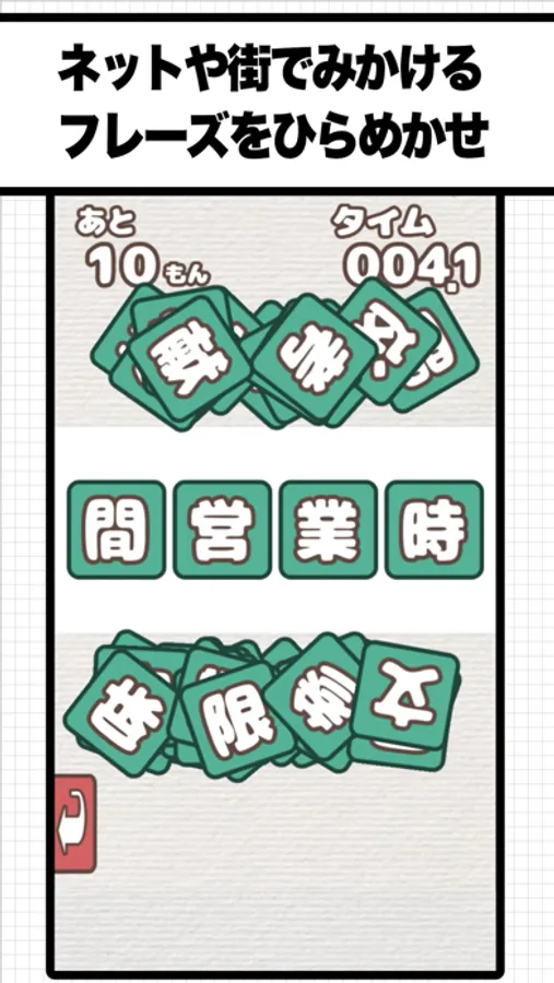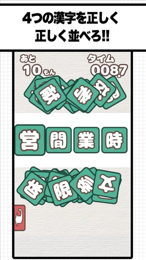 街やネット、広告など普段何気なく見かける4文字の漢字がバラバラで出題されます。
