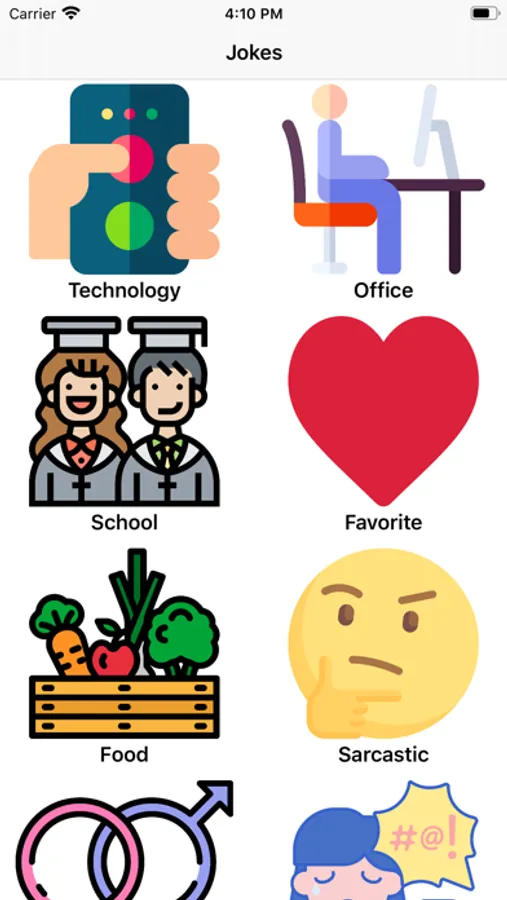 This app is all about jokes, currently it have technology jokes, office jokes, school jokes, food jokes, sarcastic jokes, adult jokes and insult jokes. There is no any ads.