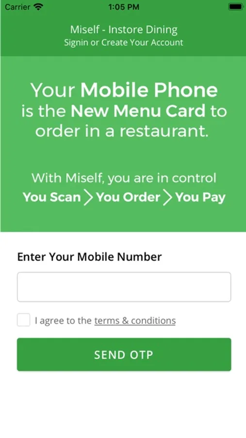 Miself is a marketplace for restaurants and their diners to order food In store and Dine.