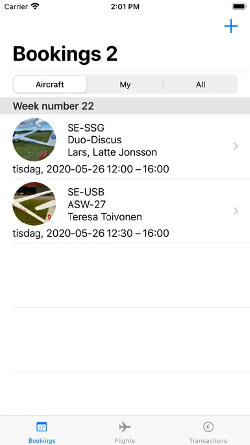 2.0 - 2022 MyWeblog flygningar, bokningar och transaktioner för Eskilstuna Flygklubb