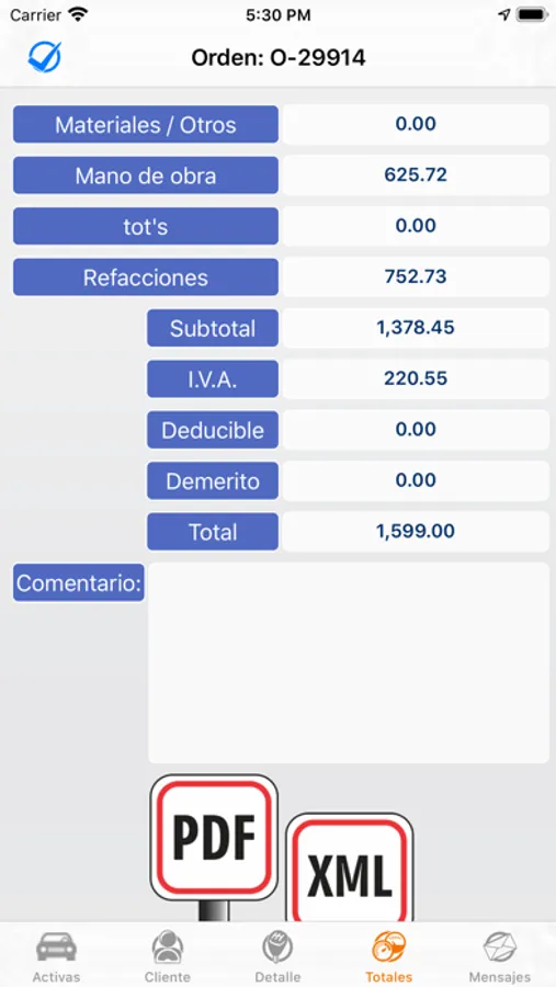 Presenta su aplicación Soni Autos Movil para la visualización de las ordenes de servicio de un cliente en la agencia de autos.