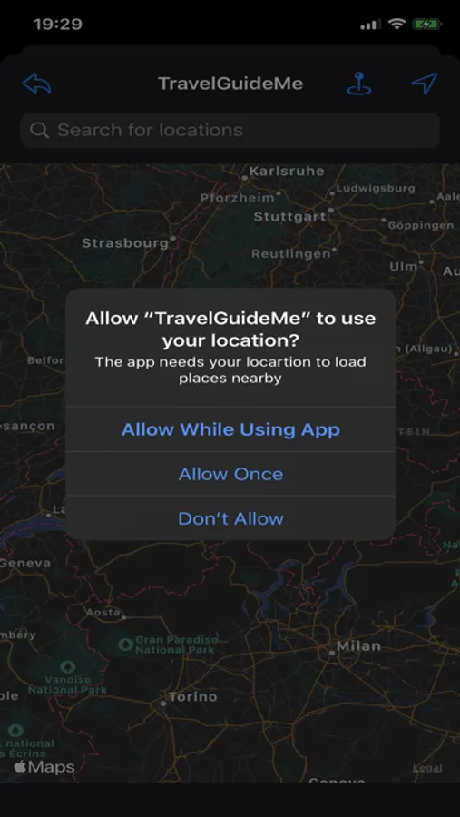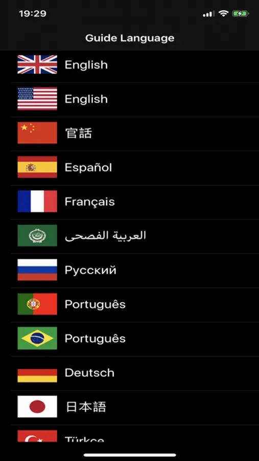 All you have to do is to select your guide's language, then navigate the map and find places that you would like to discover. The places are pinned in the map as annotations that you can select and let TravelGuideMe do the rest for you. You can also search or zoom any location, then press the pin menu's button to discover more places.
