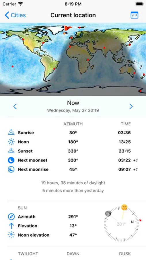 See sunrise and sunset times at a glance, for locations around the world, now or anytime.