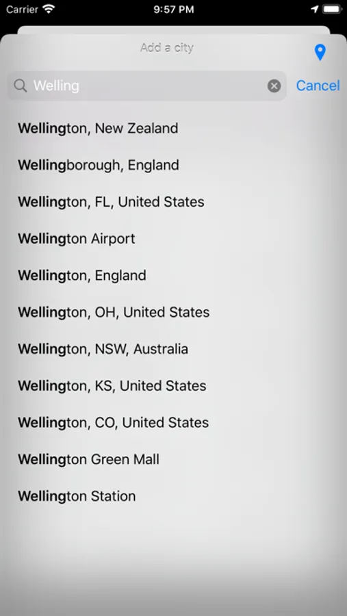 - Save your favorite locations. Easily add known cities or add your own custom places.