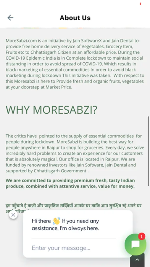 MoreSabzi is building the best way for people anywhere in the Raipur to shop for groceries. Every day, we solve incredibly hard problems to create an experience for our customers that is absolutely magical. Our office is located in Raipur. We are funded by renowned investors like Jain Software, Jain Dental and supported by Chhattisgarh Government.