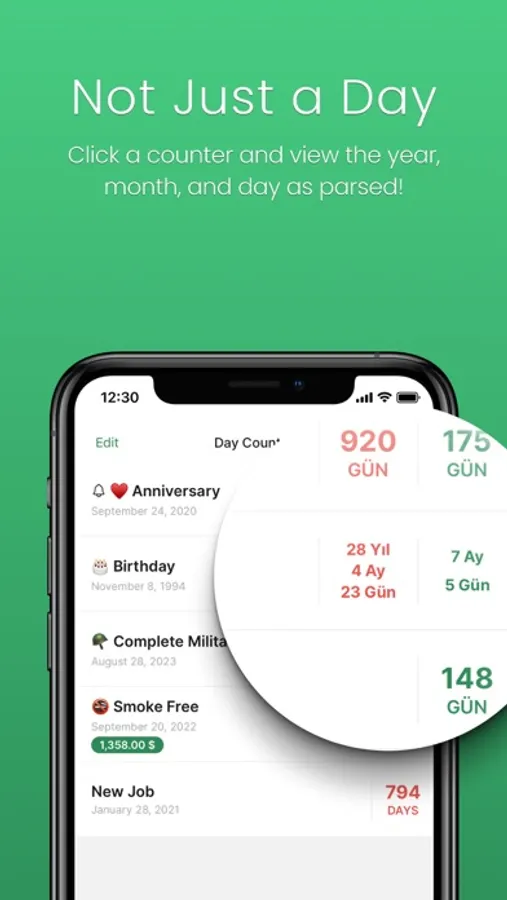 Simple and useful day counting application. Count days to a past, future or recurring date and calculate your savings. Get notification reminders when it approaches.
