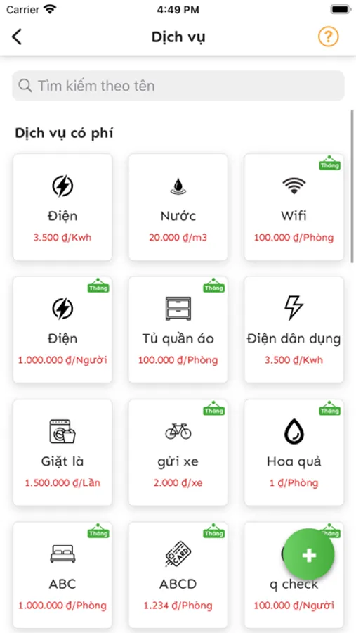 • Quản lý các dịch vụ như điện nước, dịch vụ vệ sinh, bảo vệ.... của từng phòng, không cần ghi chép, hệ thống sẽ quản lý giúp bạn.
