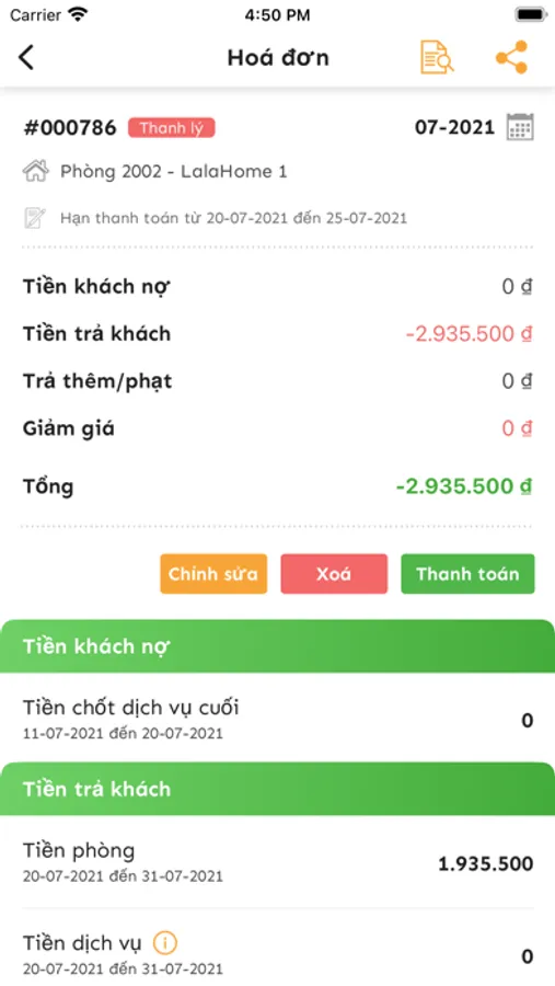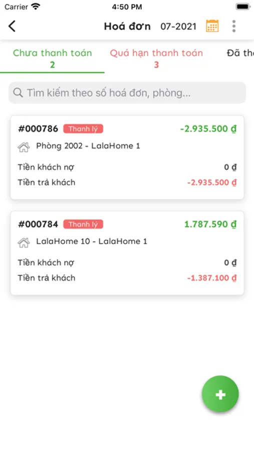 • Quản lý hoá đơn, tự động tạo hoá đơn theo tháng cho từng phòng, quản lý hoá đơn đã thanh toán, chưa thanh toán, nhắc nhở về hoá đơn quá hạn thanh toán.