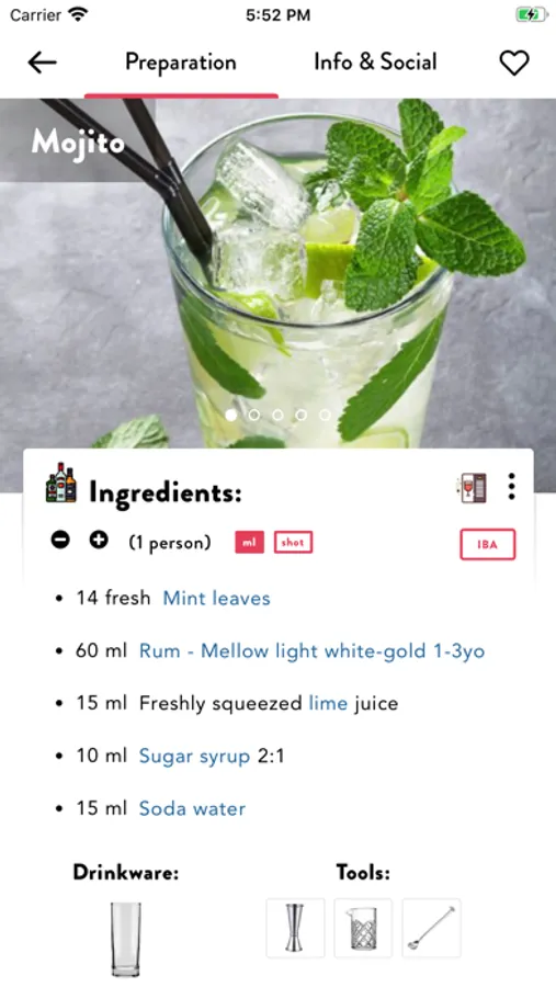 ▸ Make your cocktail drink by following IBA (International Bartender Association) recommendations
