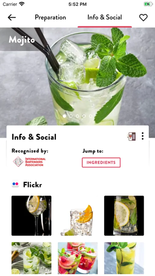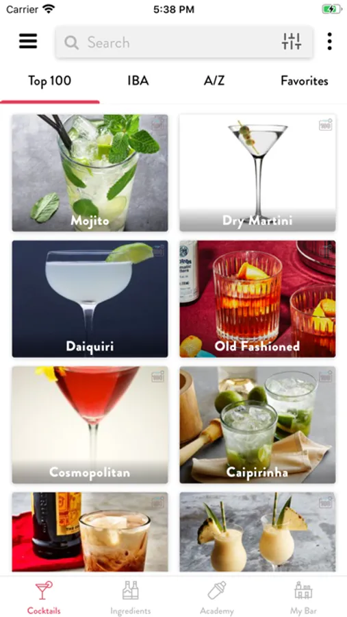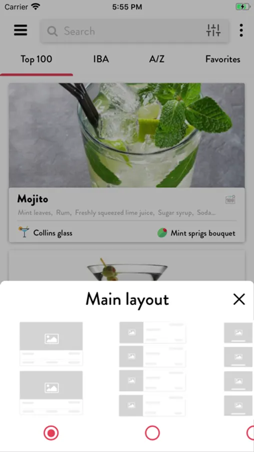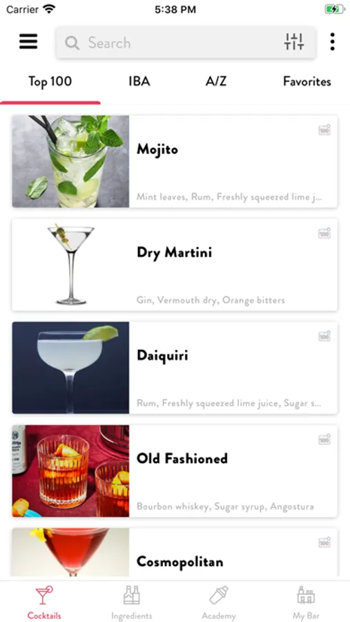 ▸ Tap on each of the cocktail recipes to view the cocktail ingredients