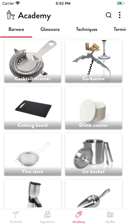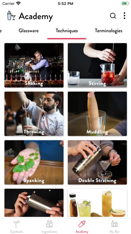 ▸ Learn more information on the cocktail glassware, barware, equipment and techniques through Cocktail Academy