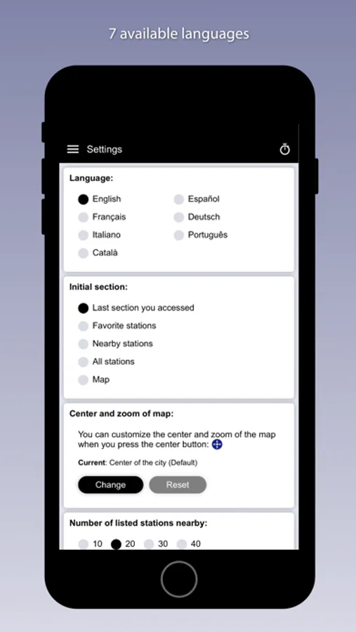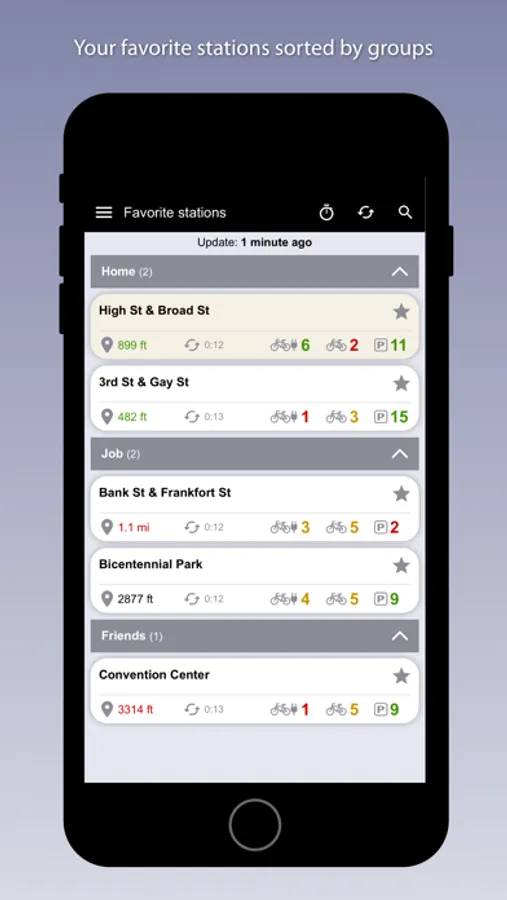 - List of favorite stations categorized by groups (home, work, friends or general).