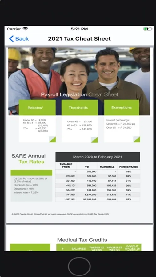 The tax rates tables and additional information can be viewed as a pdf document accessed from the Information button on the top right of the screen. This pdf document is a "Cheat Sheet" of Payroll Legislation and is used daily by Payslip Support Staff for easy reference.