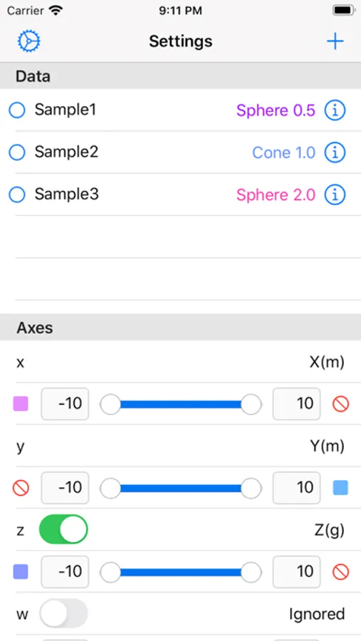 • In the application, tap "share button" and then choose “3dDataPlot”.