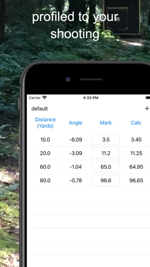 Sight mark calculator for archery. Works in feet, yards or meters. Calibrates from two or more measurements for highly accurate fit to arrow flight. Use from watch or phone, or printed card or sight tape. Angles can be measured from phone or watch. Can calculate cuts for angles. Trial use for 28 days, unlocked with one off purchase.