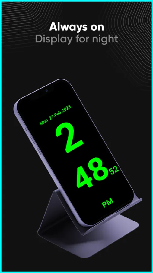 The clock display is extra-large, making it perfect for people with visibility issues or those who prefer to see the time from a distance. The clock color is adjustable, which means you can choose your preferred color and match it with your device's theme. Additionally, the clock font is settable, allowing you to choose the font that best suits your style.