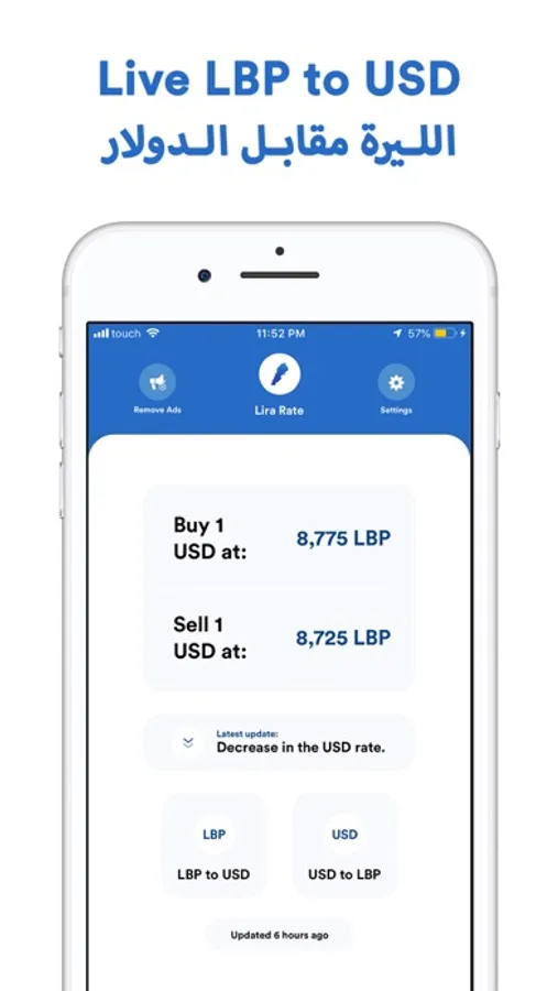 تحويل من الدولار إلى الليرة اللبنانية على الفور بأسعار السوق.